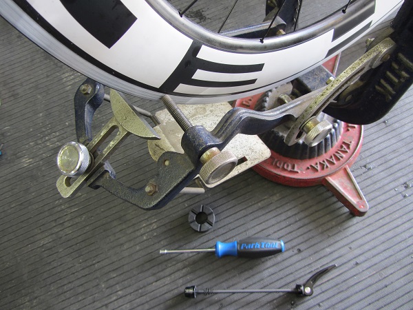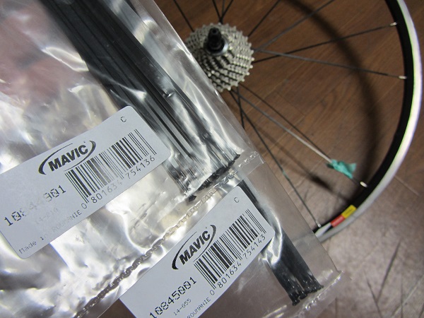 完成車に装着されているMAVIC(マビック)のホイールを組み直します。