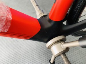 こちらは週末に納車したロードバイクの組付作業。