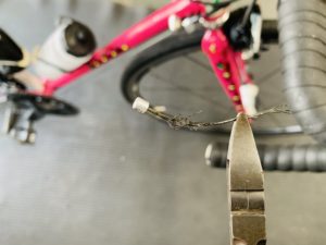 リヤディレーラー側のインナーシフトケーブルが破損し、