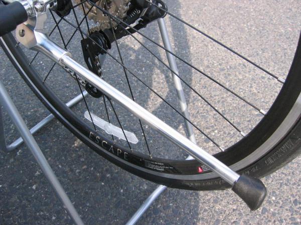 タイヤは28mm幅のロードタイヤとMTB譲りのフラットバーハンドルを装備。