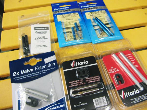 各種チューブ/チューブラータイヤに対応したエクステンションを調べています。
