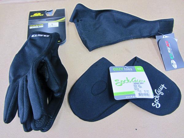 GSGのウインターグローブ(g glove)&フェイスマスク(g mask)と、SockguyのトーシューズカバーCOZYtoesです。