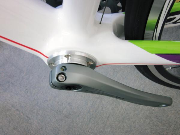 フレーム側に取り付けられたシェルケース(台座)に、BBが圧入されたサイドのキャップを固定(ボルトオン)する構造です。