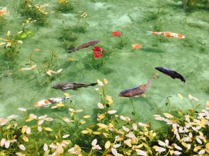 実際には、もう少し濁った水面にコイが泳いでおり、