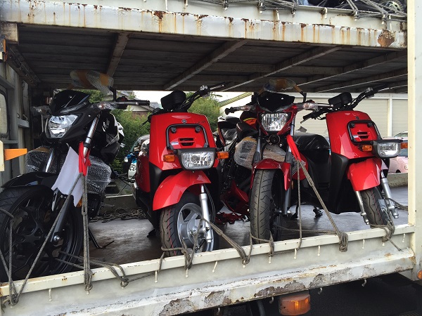 ココ車両にはオートバイと共にスクーターが積載されています。
