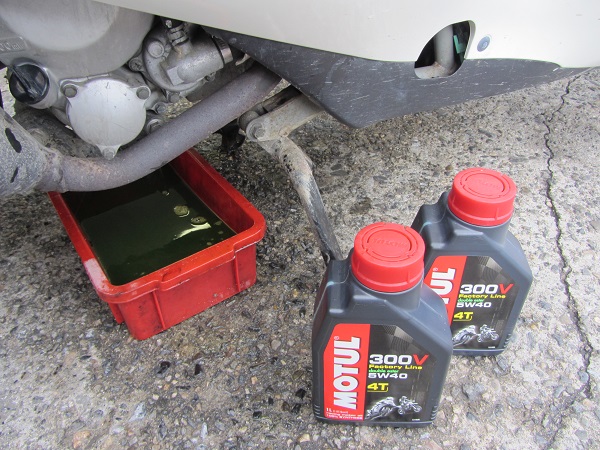 自動車には、H-TECHの100%化学合成の低燃費オイルをご用命頂いていますが、このバイクには300Vと言われる最高級のレーシングオイルを注入。