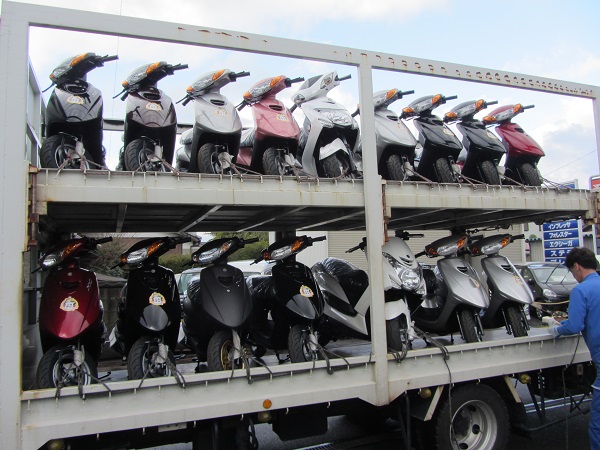 連日、原動機付き自転車(50ccスクーター・バイク)が大量に入荷しています。