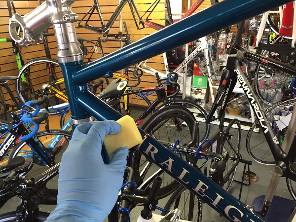 今日はクロモリフレームのロードバイクにケイ素の被膜を。
