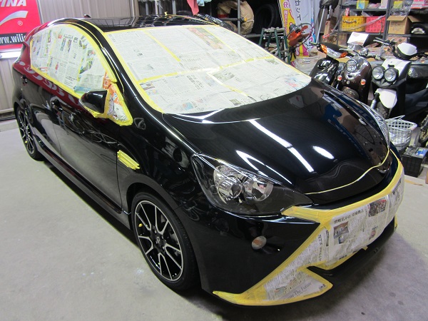 明日納品するトヨタの小型車・ヴィッツにガラスの被膜を纏いました。