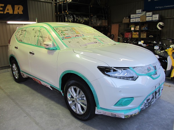 いつもの様にマスキング作業を行い、ボディ表面の下地処理を行いました。
