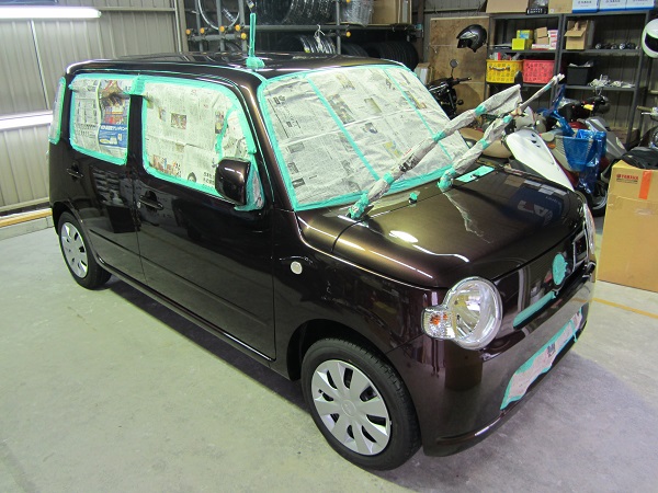 当店でもデモカーとしてスタンダードなラパンの“アーバンブラウンパールメタリック”を使用しています。