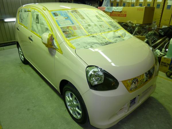 一昨日のボデイコーティングに引き続いて、本日も人気のミライースを施工しました。