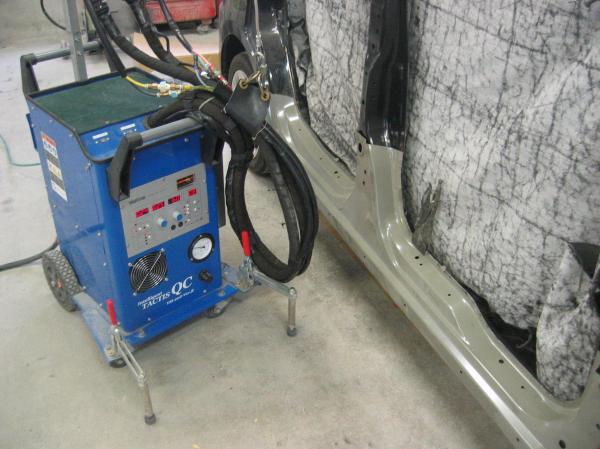 スポット溶接機は、「衝突安全ボディ」に対応した機械を導入しています。