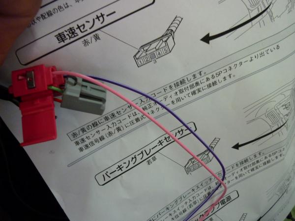 ピンク色の配線がナビゲーションから来る配線で、コレを真ん中の車速とカプラオンします。