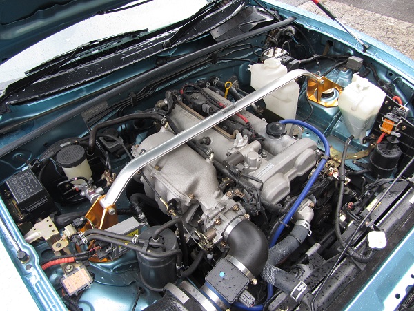 タワーバーやアンダーフレームを装着しボディ剛性を上げると共に、給排気系統にも手を加えています。