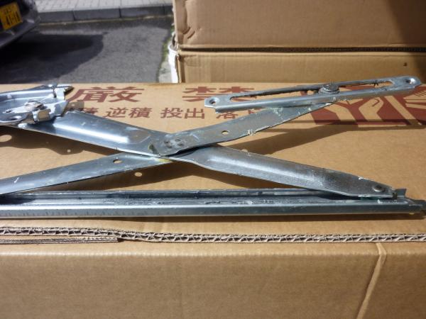 クロス(X)状の金属の板が中心を軸に開いたり縮んだりしてガラスを開閉させます。