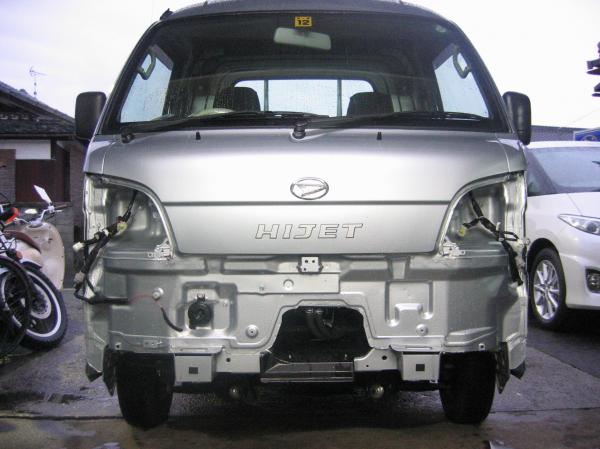 軽トラックのバンパーは、カバーのみでちゃっちいモノです。