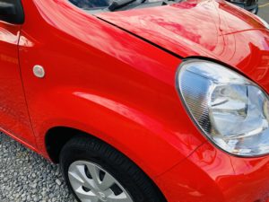 車検整備でご入庫の真っ赤な乗用車をボディメンテ。