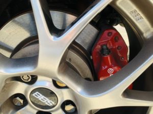 ブレーキ時の音鳴りで入庫の重量級スポーツカー。