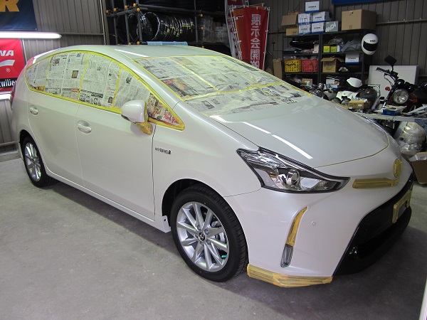 早くも話題のプリウスαにボディガラスコーティングを施工しました。