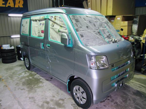 いつもの様にマスキング作業や下地処理・脱脂と行うのですが、本日は気温が低いことからガレージ内をジュエットヒーターにて暖房しました。