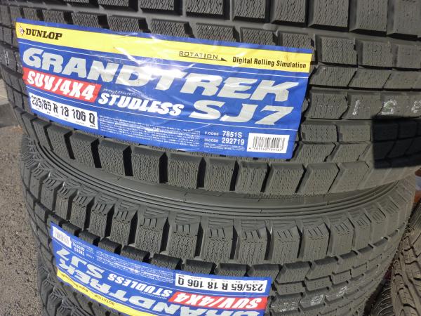 このタイヤは純正ホイールに組み付けた18インチのダンロップ・GRANDTREK SJ7です。
