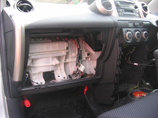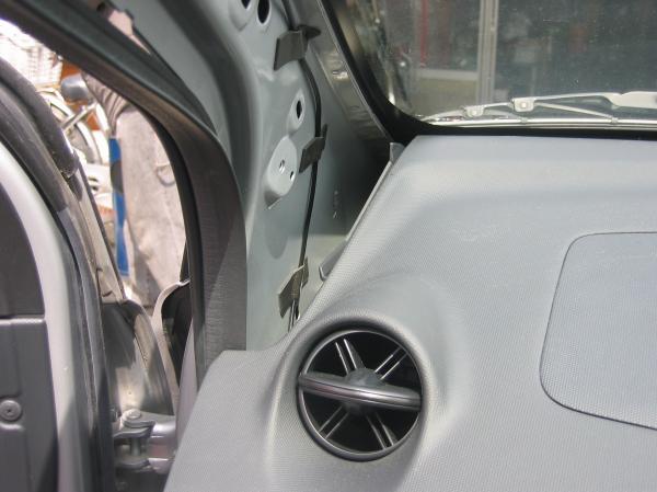 今回取付したのは、デンソー製の分離式です。アンテナはフロントガラスに取付、配線をピラーから沿わして下へ回します。