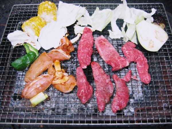 鶏肉にソーセージやとうもろこし、なすびやピーマンなどいろんなものを焼きました。