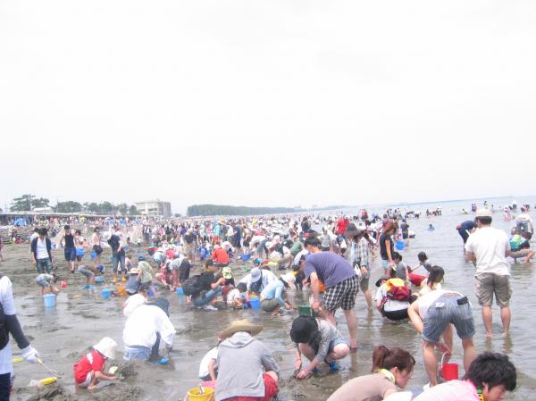 子供と一緒にバケツを持って貝をひたすら掘っていました。
