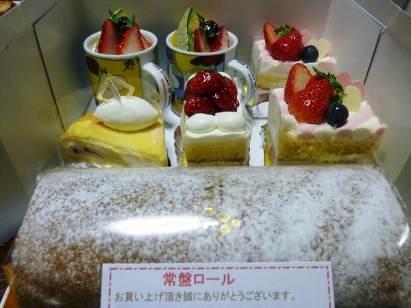 奥の左2つはプリン・右2つはいちごの乗った超あっさり系のショートケーキ。