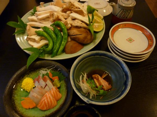 お魚のお刺身と、地鶏のたたきから始まりました。