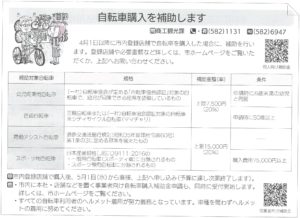 「守山市自転車購入補助金」制度が開始されています。