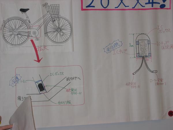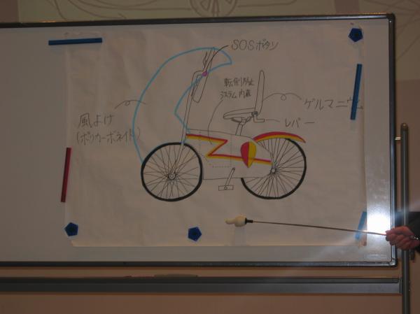 年間17万件にも及ぶ自転車の事故を少しでも無くす為、ICチップを搭載した自転車が、自動車のナビゲーションに連動し位置を確認出来るシステムで、これにより接触事故が防げる と言った内容でした。