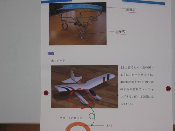滋賀県と言えば琵琶湖。その環境でも楽しく利用できる自転車をコンセプトに、水上時はスクリューとフロート、そして陸上時は、フロートが傘の役目を果たし安全の為、3輪車で走行 と言った内容でした。